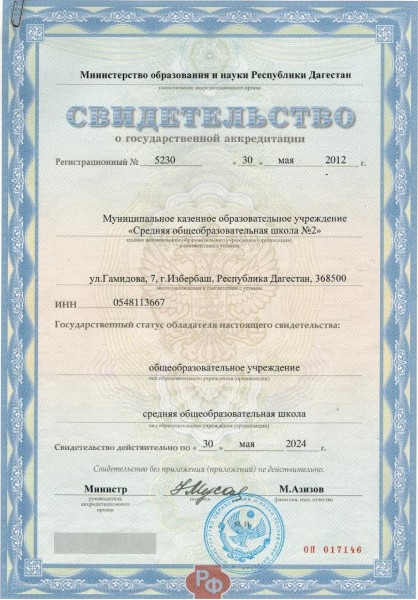 | Адрес местонахождения образовательной организации* | 368502, Республика Дагестан, г.Избербаш, ул. Гамидова 7 |