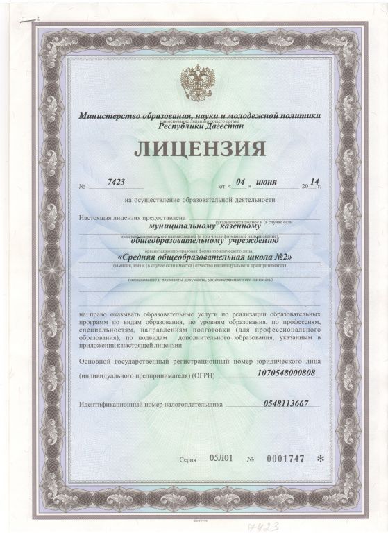 | Полное наименование образовательной организации* | Муниципальное казенное общеобразовательное учреждение "Средняя общеобразовательная школа № 2" |